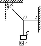 如图4所示,AO、BO和CO三根绳子能承受的最大拉力相等.O为结点,OB与竖直方向夹角为θ,悬挂物体质量为m.求:
