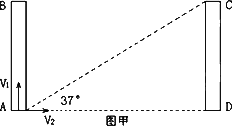 如图甲所示,竖直直放置的两端封闭的玻璃管中注满清水,内有一个红蜡块能在水中以0.3m/s的速度匀速上浮。现当红蜡块从玻璃管的下端匀速上浮的同时,使玻璃管水平匀速向右运动,测得红蜡块实际运动的方向与水平方向的夹角为37°,则(已知sin37°=0.6;cos37°=0.8)![]()