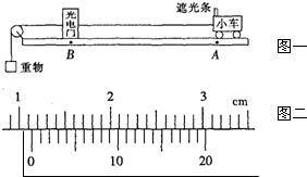 (1)若用游标卡尺测出遮光条的宽度d,实验时将小车从图二所示位置由静止释放,由数字计时器读出遮光条通过光电门的时间△t,则小车经过光电门时的速度为v=