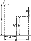 如图所示,M和N是两块相互平行的光滑竖直弹性板.两板之间的距离为L,高度为H.现从M板的顶端O以垂直板面的水平速度v0抛出一个小球.小球在飞行中与M板和N板分别在A点和B点相碰,并最终在两板间的中点C处落地.求: