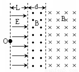如图所示,某一空间分布着有理想边界的匀强电场和匀强磁场。左侧匀强电场的场强大小为E、方向水平向右,电场宽度为L;中间区域匀强磁场的磁感应强度大小为B,方向垂直纸面向外。右侧区域匀强磁场的磁感应强度大小也为B,方向垂直纸面向里,其右边界可向右边无限延伸。一个质量为m、电量为q、不计重力的带正电的粒子从电场的左边缘的O点由静止开始运动,穿过中间磁场区域进入右侧磁场区域后,又回到O点,然后重复上述运动过程。求:
