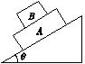 如图所示,倾角为θ的固定斜面充分长,一质量为m上表面光滑的足够长的长方形木板A正以速度v0沿斜面匀速下滑,某时刻将质量为2 m的小滑块B无初速度地放在木板A上,则在滑块与木板都在滑动的过程中( )