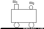 由于m1>m2,物块的惯性大,在小车上小球相对物块向左运动