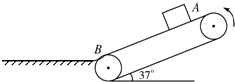 ,从顶端A到底端B的长度为31m,传送带以12.4m/s的速率逆时针转动,在顶端A处无初速度地放一个质量为0.5kg的一个物体,它与传带间的动摩擦因数为0.8,物体到达传送带底端B处时通过一个光滑的小圆弧后滑到水平面,(不计物体从传送带滑到水平面上的能量损失),物体与水平面间的动摩擦因数为0.5,物体最终停在水平面上C处(图中未画出),求物体从A点滑到C点的时间。![]()