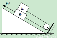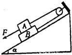 在图中所示的装置中,斜面与水平成37°角,A的质量是10kg,A与B之间的动摩擦因数为0.8,B的质量为5kg,B与斜面之间的动摩擦因数为0.5,为使B沿斜面向上匀速运动,应当用多大的力F沿斜面方向向上拉B?