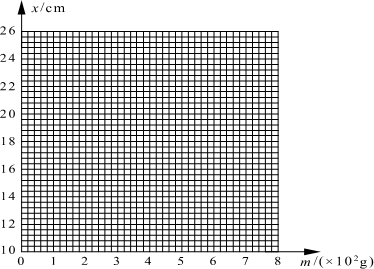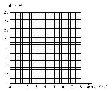 (1) 根据所测数据,在下面的坐标纸上画出弹簧指针所指刻度尺的刻度x与钩码质量m的关系图线。