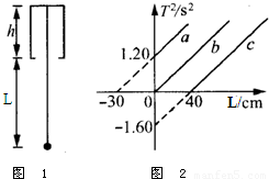 将一单摆装置竖直悬挂于某一深度为h(未知)且开口向下的小筒中(单摆的下部分露于筒外),如图1所示,将悬线拉离平衡位置一个小角度后由静止释放,设单摆振动过程中悬线不会碰到筒壁,如果本实验的长度测量工具只能测量出筒的下端口到摆球球心之距L,并通过改变L而测出对应的摆动周期T,再以T