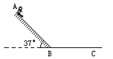 (10分)在海滨游乐场里有一种滑沙的游乐活动.如图所示,人可坐在滑板上从斜坡的高处由静止开始滑下,滑到斜坡底端B点后沿水平的滑道再滑行一段距离到C点停下来.若某人和滑板的总质量m = 60.0 kg,滑板与斜坡滑道、水平滑道间的动摩擦因数相同,大小均为μ= 0.50,斜坡的倾角θ= 37°,斜坡与水平滑道间是平滑连接的,整个运动过程中空气阻力忽略不计,重力加速度g取10 m/s2.