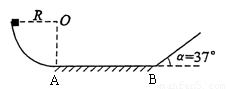圆弧上端,圆弧半径R=55cm,下端接一长为1m的水平轨道AB,最后通过极小圆弧与倾角
