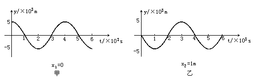 两处的质点的振动图线,如下图中甲和乙所示,又知此波的波长大于1m,则此波的传播速度v=________m/s.