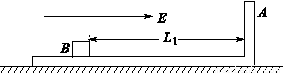 (11分)光滑水平面上放有如图所示的用绝缘材料制成的“┙”型滑板(平面部分足够长),滑板的质量为4m。距离滑板的右壁A为L1的B处放有一质量为m、电量为+q(q>0)的小物体(可视为质点),小物体与板面之间的摩擦可忽略不计。整个装置处于场强为E、方向水平向右的匀强电场中。开始时,滑板与小物体都处于静止状态,某时刻释放小物体,求: