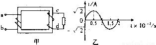 如图甲为理想变压器,原、副线圈的匝数比为3:2,在原线圈上通入正弦交流电如图乙所示,设电流从原线圈a端流入b端流出时为电流正方向,副线圈中电流由c端流出d端流入时为副线圈中电流正方向,那么副线圈中电流的有效值以及在一个周期内副线圈电流达到正方向最大值对应于乙图中的时刻应是( )