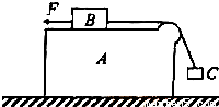 水平面上有一带圆弧形凸起的长方形木块A,木块A上的物体B用绕过凸起的轻绳与物体C相连,B与凸起之间的绳是水平的。用一水平向左的拉力F作用在物体B上,恰使物体A、B、C保持相对静止,如图。己知物体A、B、C的质量均为m,重力加速度为g,不计所有的摩擦,则拉力F应为多大?