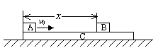 如图所示,在光滑水平桌面上放有长木板C,在C上左端和距左端x处各放有小物块A和B,A、B的体积大小可忽略不计,A、B与长木板C间的动摩擦因数为μ,A、B、C的质量均为m,开始时,B、C静止,A以某一初速度v0向右做匀减速运动,设物体B与板C之间的最大静摩擦力等于滑动摩擦力.求:![]()