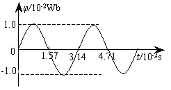 一个矩形线圈在匀强磁场中以恒定的角速度ω绕垂直于磁场方向的转动轴转动.线n=100匝.穿过每匝的磁通量φ随时间按正弦规律变化,如图所示.发电机内阻r=5.0Ω,外电路电阻R=95Ω.已知感应电动势的最大值Em=nωφm,其中φm为穿过每匝线圈的磁通量的最大值.求串联在外电路中的理想的交流电流表的读数.