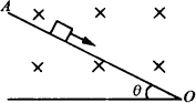 图中OA是一光滑、绝缘斜面,倾角θ=37°.一质量m=0.02 kg的带电体从斜面上的某点由静止开始下滑.如果物体的电量q=+10-2 C,垂直纸面向里的匀强磁场B=4.0 T.试求:物体在斜面上运动的最大速率及其沿斜面下滑的最大距离(g取10 m/s2,sin37°=0.6,cos37°=0.8,斜面足够长).