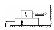 如图所示,A、B两个物体迭放在一起,A的右面用不计重力的 弹簧测力计连在墙上,此时测力计是水平的。我们可以用这个装置来测定AB间的动摩擦因数,需要测量的量有:_________________.AB间动摩擦因数的表达式为________________。![]()