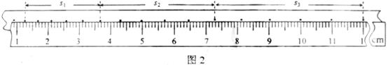图2为用米尺测量某一纸带上的s1、s3的情况,由图可读出s1= mm,