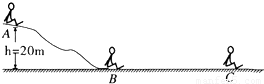 如图所示,某人乘雪橇从雪坡A点滑至B点,接着沿水平地面滑至C点停止.人与雪橇的总质量为70 kg,A点距地面的高度为20 m,人与雪橇在BC段所受阻力恒定.图表中记录了人与雪橇运动过程中的有关数据.求:(取g=10 m/s2)