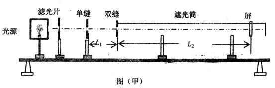 (8分)用双缝干涉测光的波长。实验装置如图(甲)所示,已知双缝与屏的距离L,双缝间距d。用测量头来测量亮纹中心的距离。测量头由分划板、目镜、手轮等构成,转动手轮,使分划板左右移动,让分划板的中心刻线对准亮纹的中心(如图(乙)所示),记下此时手轮上的读数,转动测量头,使分划板中心刻线对准另一条亮纹的中心,记下此时手轮上的读数。