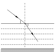 如图所示,某透明液体深1m,一束与水平面成300角的光线从空气射向该液体,进入该液体的光线与水平面的夹角为450。试求: