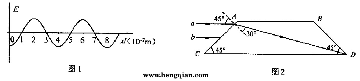 1865年发表的(电磁场的动力学理论)一文中揭示了电、磁现象与光的内在联系及统一性,即光是电磁波.(1)一单色光波在折射率为1.5的介质中传播,某时刻电场横波图象如图1所示.求该光波的频率.