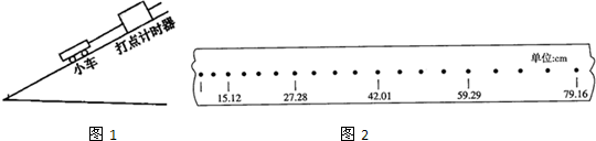 一打点计时器固定在斜面上某处,一小车拖着穿过打点计时器的纸带从斜面上滑下,如图1所示,图2表示的打出的纸带的一段.