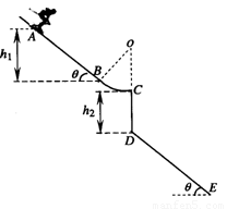 山地滑雪是人们喜爱的一项体育运动.一滑雪坡由AB和BC组成,AB是倾角为37°的斜坡,BC是半径为R=5m的圆弧面,圆弧面和斜面相切于B,与水平面相切于C,如图所示,AB竖直高度差hl=8.8m,竖直台阶CD高度差为h2=5m,台阶底端与倾角为37°斜坡DE相连.运动员连同滑雪装备总质量为80kg,从A点由静止滑下通过C点后飞落到DE上(不计空气阻力和轨道的摩擦阻力,g取10m/s2,sin37°=0.6,cos37°=0.8).求: