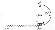 (9分)如图所示,竖直平面内的光滑半圆形轨道MN的半径为R,MP为粗糙水平面.两个小物块A、B可视为质点,在半圆形轨道圆心O的正下方M处,处于静止状态.若A、B之间夹有少量炸药,炸药爆炸后,A恰能经过半圆形轨道的最高点N,而B到达的最远位置恰好是A在水平面上的落点.已知粗糙水平面与B之间的动摩擦因数为μ,求: