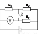 =3Ω,电压表为理想电表,当开关S断开时,电压表示数为5.7V;当开关S闭合时,电压表示数为3.5V,求电源的电动势和内电阻.![]()
