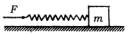 一质量为m的木块,放在光滑的水平地面:上,用一根轻弹簧连着木块,如图所示,人用恒力F水平推弹簧使木块向前移动,获得速度v,人做功为[ ]
