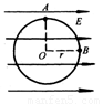 有一匀强电场,其场强为E,方向水平向右,把一个半径为r的光滑绝缘环,竖直放置于场中,环面平行于电场线,环的顶点A穿有一个质量为m,电量为q(q>0)的空心小球,如图所示,当小球由静止开始从A点下滑1/4圆周到B点时,小球对环的压力大小为( )