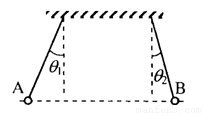 ,用绝缘细线悬挂在天花板上。平衡时,两小球恰处于同一水平位置,细线与竖直方向间夹角分别为θ1与θ2(θ1>θ2)。两小球突然失去各自所带电荷后开始摆动,最大速度分别