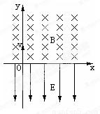 如图所示,在x轴上方有垂直于xy平面向里的匀强磁场,磁感应强度为B;在x轴下方有沿y轴负方向的匀强电场,场强为E。一质量为m,电荷量为-q的粒子从坐标原点O沿着y轴正方向射出。射出之后,第三次到达x轴时,它与点O的距离为L。