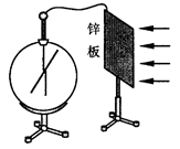 如图所示,用导线将验电器与洁净锌板连接,触摸锌板使验电器指示归零。用紫外线照射锌板,验电器指针发生明显偏转,接着用毛皮摩擦过的橡胶棒接触锌板,发现验电器指针张角减小,此现象说明锌板带 电(选填写“正”或“负”);若改用红外线重复上实验,结果发现验电器指针根本不会发生偏转,说明金属锌的极限频率 红外线(选填“大于”或“小于”)。![]()