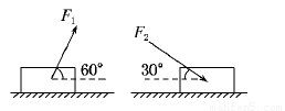 如图所示,一物块置于水平地面上.当用与水平方向成60°角的力F1拉物块时,物块做匀速直线运动;当改用与水平方向成30°角的力F2推物块时,物块仍做匀速直线运动.若F1和F2的大小相等,则物块与地面之间的动摩擦因数为( )