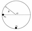 如图所示,内壁光滑半径为R的圆形轨道,固定在竖直平面内.质量为m1的小球静止在轨道最低点,另一质量为m2的小球(两小球均可视为质点)从内壁上与圆心O等高的位置由静止释放,运动到最低点时与m1发生碰撞并粘在一起.求:![]()