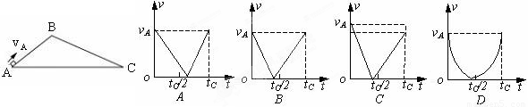 有两个光滑固定斜面AB和BC,A和C两点在同一水平面上,斜面BC比斜面AB长(如图)。一个滑块自A点以速度vA上滑,到达B点时速度减小为零,紧接着沿BC滑下。设滑块从A点到C点的总时间是tC,那么下图四个图象中,正确表示滑块速度的大小v随时间t变化规律的是