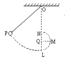 如图,一细绳的上端固定在天花板上靠近墙壁的O点,下端拴一小球.L点是小球下垂时的平衡位置.Q点代表一固定在墙上的细长钉子,位于OL直线上.N点在Q点正上方,且QN=QL.M点与Q点等高.现将小球从竖直位置(保持绳绷直)拉开到与N等高的P点,释放后任其向L摆动.运动过程中空气阻力可忽略不计.小球到达L后,因细绳被长钉挡住,将开始沿以Q为中心的圆弧继续运动.在这以后