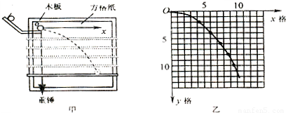 某同学在“研究平抛物体的运动”的实验中,通过描点法画出小球平抛运动的轨迹,并求出小球平抛运动的初速度和抛物线方程。他先调整斜槽轨道使槽口末端水平,然后在方格纸上建立好直角坐标系xOy,将方格纸上的坐标原点O与小球在轨道槽口末端的球心重合,Oy轴与重锤线重合,Ox轴水平(如图甲)。实验中使小球每次都从斜槽同一高度由静止滚下,经过一段水平轨道后抛出。依次均匀下移水平挡板的位置,分别得到小球在挡板上的落点,并在方格纸上标出相应的点迹,再用平滑曲线将方格纸上的点迹连成小球的运动轨迹(如图乙所示)。已知方格边长为L=5cm,重力加速度为g=10m/s2,计算结果取两位有效数字。![]()