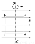 如图所示,一正方形线圈abcd在匀强磁场中绕垂直于磁感线的对称轴OO′匀速转动.沿着OO′观察,线圈沿逆时针方向转动.已知匀强磁场的磁感应强度为B,线圈匝数为n,边长为l,电阻为R,转动的角速度为ω,则当线圈转至图示位置时( )