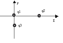 (10分). 在如图所示的坐标系中放置3个带电小球,原点处的小球所带电量为q1=5.0×10-9C;在x轴正方向距原点0.30m处的小球所带电量q2=6.0×10-9C;在y轴负方向上距原点0.10m处的小球所带电量q3=-