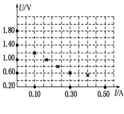 (3)排除故障后,该同学顺利完成实验。测得下列数据且根据数据在下面坐标图中描出对应的点,并可画出U—I图后求出:电池的电动势为________,内阻为________. ![]()