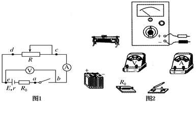 (8分)某同学在用电流表和电压表测电池的电动势和内阻的实验中,串联一只2 .8Ω的保护电阻R0,实验电路如下图所示.![]()