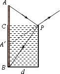 某位同学用下面的方法测量某种液体的折射率.如图所示,他在一个烧杯中装满了某种透明液体,紧贴着杯口竖直插入一根直尺AB,眼睛从容器边缘的P处斜向下看去,观察到A经液面反射所成的虚像