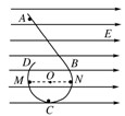 如右图所示,在光滑绝缘的水平桌面上固定放置一光滑、绝缘的挡板ABCD,AB段为直线形挡板,BCD段是半径为R的圆弧形挡板, 挡板处于场强为E的匀强电场中,电场方向与圆直径MN平行.现有一带电荷量为q、质量为m的小球静止从挡板上的A点释放,并且小球能沿挡板内侧运动到D点抛出,则( )