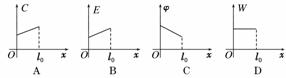 (2013·吉林联考)一平行板电容器充电后与电源断开,负极板接地。两板间有一个正试探电荷固定在P点,如图4所示,以C表示电容器的电容、E表示两板间的场强、φ表示P点的电势,W表示正电荷在P点的电势能,若正极板保持不动,将负极板缓慢向右平移一小段距离 l0的过程中,各物理量与负极板移动距离x的关系图象中正确的是( )
