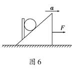 如图6所示,质量为m的球置于斜面上,被一个固定在斜面上的竖直挡板挡住.现用一 个力F拉斜面,使斜面在水平面上做加速度为a的匀加速直线运动,忽略一切摩擦,以下说法中正确的是( )![]()