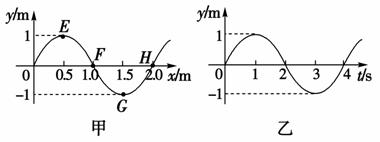 一列沿着x轴正方向传播的横波,在t=0s时刻的波形如图甲所示,则图乙表示图甲中E、F、G、H四个质点中哪一个质点的振动图象