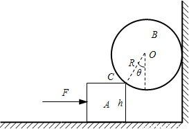 如图所示,在水平面和竖直墙壁之间放置质量为m,高为h的木块A和质量为M、半径为R的球B,各接触面均光滑,木块A受到水平向右的外力F的作用,系统处于静止状态.O为B的球心,C为A、B接触点,CO与竖直方向夹角θ=60°.现撤去水平外力F,则( )